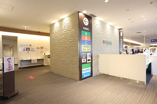 正面玄関を入り総合案内後ろ