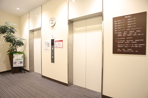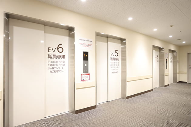 扉が開きましたら正面のエレベーターで病棟へ上がります。