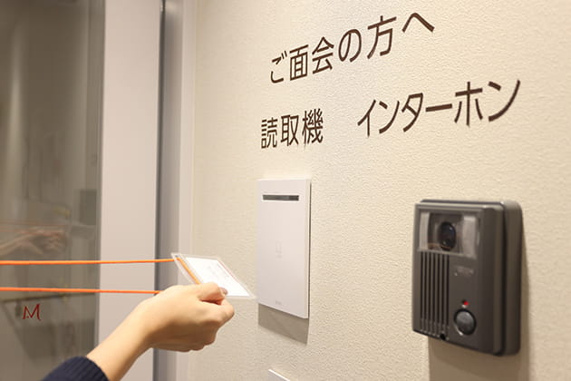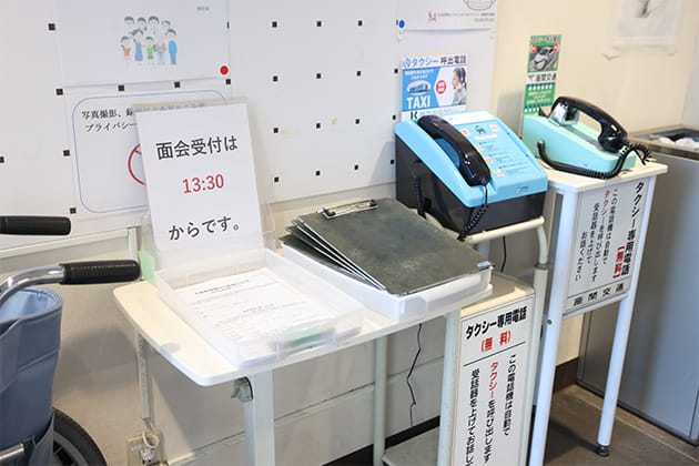 エレベーター前に面会受付デスクがあります